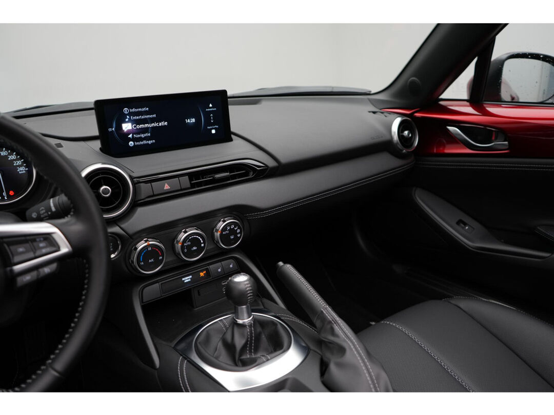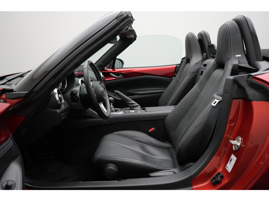 De Mazda MX-5 staat bekend om het geweldige rijgenot. De lage zit, achterwielaandrijving en soepele transmissie geven de auto enorm veel rijplezier. Daarnaast zorgt de softtop, welke in paar seconden open en dicht is, voor het echte cabriogevoel. De 1.5 liter benzine motor levert 132 pk en de auto weegt 978 kg. De Exclusive-Line uitrusting zorgt er voor dat het u niets ontbreekt aan luxe en comfort. Deze auto is Nederlands geleverd en dealer onderhouden (aantoonbaar). Daarnaast is deze Mazda MX-5 voorzien van 6 jaar fabrieksgarantie tot 31-08-2030 of 150.000 kilometer, afhankelijk van wat het eerst wordt bereikt.